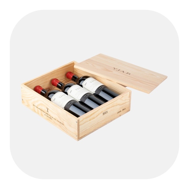 Bij 3 flessen wordt Yjar 2021 geleverd in originele houten kist.